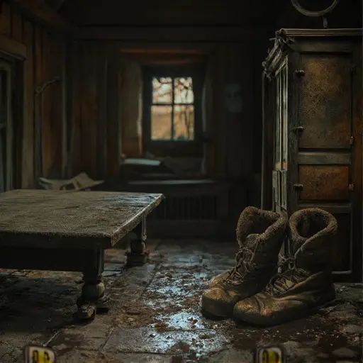Gentry’s true domain was the massive, stone-built potting shed, a separate structure adjacent to the main vegetable patch. Inside, the atmosphere was dense with the dry, potent smell of aged topsoil, dried moss, and residual bone meal. The walls were lined with racks of hand tools—spades, forks, and hoes—their wooden handles dark and smooth from years of constant use, now completely covered in a film of undisturbed dust and fine cobwebs. On a heavy wooden workbench, a series of specialized hand-forging tools for repairing his own implements lay scattered, the metal tarnished black with oxidation. The central feature was a heavy, iron-bound wheelbarrow, its tire flat and its wooden sides cracked, resting beneath a window where the light illuminated the intricate patterns of decay on its surface.