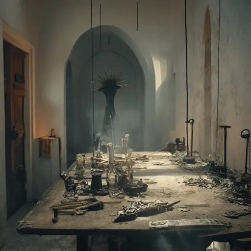 Painter Master Pigmenta Umbra was last heard working in his studio, followed by a sudden, intense sound of heavy brass crushing and wood splitting (from the camera obscura and the easel) and then immediate, profound silence. He did not leave the manor. The next morning, the studio was cold, the Chroma Chamber sealed, and the man was gone. No body was found, and the only evidence was the singular, physical alteration to his final philosophical work.