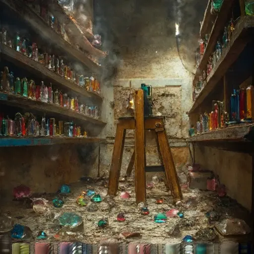 Painter Master Chroma Vacuum was last heard working in his studio, followed by a sudden, intense sound of heavy wood grinding and glass shattering (from the color wheel and the telescope) and then immediate, profound silence. He did not leave the manor. The next morning, the studio was cold, the Spectral Chamber sealed, and the man was gone. No body was found, and the only evidence was the singular, physical alteration to his final philosophical work.