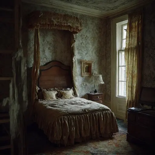 The front door, heavy and bruised, gave a soundless sigh as it fell open, inviting the faintest breeze to stir the deep, velvet folds of a twenty-year silence. Here, in the forgotten core of Ashwood Manor, time was not measured in hours but in the deepening layers of dust that muted every surface. The sun, filtered through panes grimy with the sediment of seasons, cast long, golden aisles across the parquet floor, illuminating an atmosphere thick with wood decay and the faint, sweet scent of long-dried potpourri. It was as if the air itself held its breath, and every floorboard creak felt like the house observing, patiently waiting for the intruders to leave.