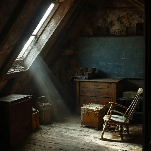 A single telescope rests near the window, still aimed at an indifferent sky. Whether Elias or another occupant placed it there remains uncertain, but its lens points directly toward a constellation scribbled repeatedly in his notes. The house seems determined to keep this alignment intact, as if guarding a secret woven between beams and stars.