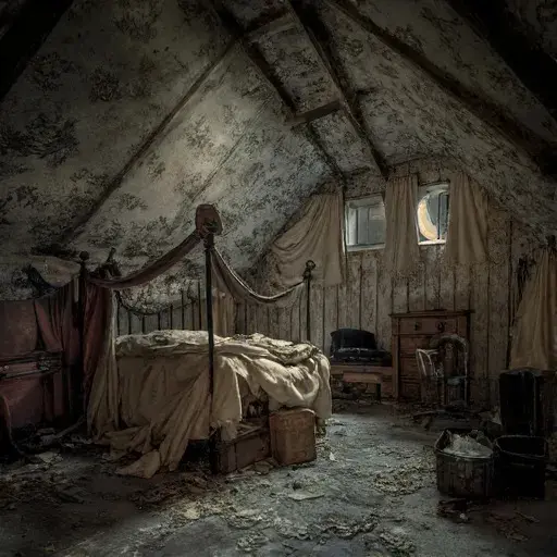 The attic bedroom, once Lucien’s private refuge, breathes with unresolved tenderness. Letters addressed to an unnamed muse spill from a cedar trunk, each page trembling with longing. The mansion holds these emotions like a reliquary, preserving the ache he tried so hard to hide.