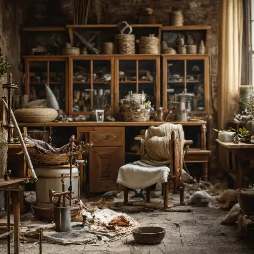Whispers spread that a commissioned blanket bore uneven tension, its border drifting off pattern. In the supply cubby, a cone of dyed wool lies crushed, imprinting shallow ridges in its side. Danuta’s carved shuttle shows a fresh nick. A bundle of draft notes has slipped from its string, corners bent, ink smudged at one edge. Even the warp beam’s ties sag in one section, as though retied with an uncertain hand. These signs outline strain but never declare its cause, forming a muted map of doubt in a room once ruled by precision.