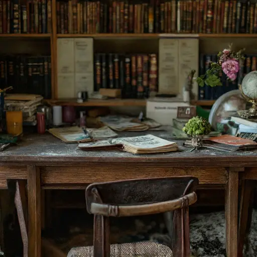 This space belonged to Clara Langford, born 1883 in Brighton, England, to a family with modest wealth and refined education. A professional horticulturist, she specialized in rare orchids and ferns, tending the greenhouse with disciplined care. Daily routines involved planting, pruning, pressing specimens, and cataloging growth patterns in leather-bound journals. A framed photograph shows her beside her mother, holding a delicate fern, indicating both familial closeness and professional devotion. Ink-stained hands and smudged gloves reveal ambition, precision, and a life deeply entwined with her plants.