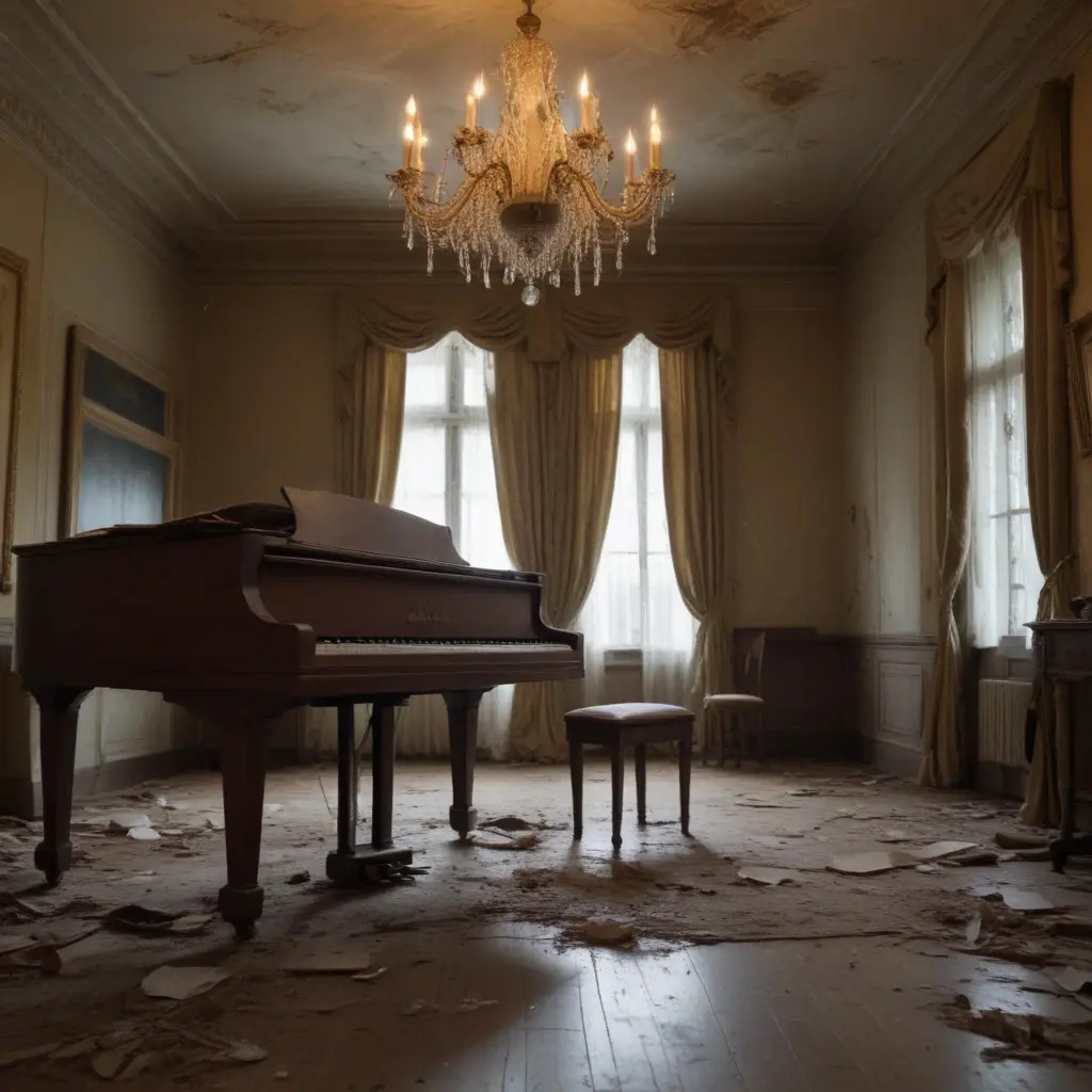 (Alt text: haunted mansion interior with decaying furniture and eerie lighting)