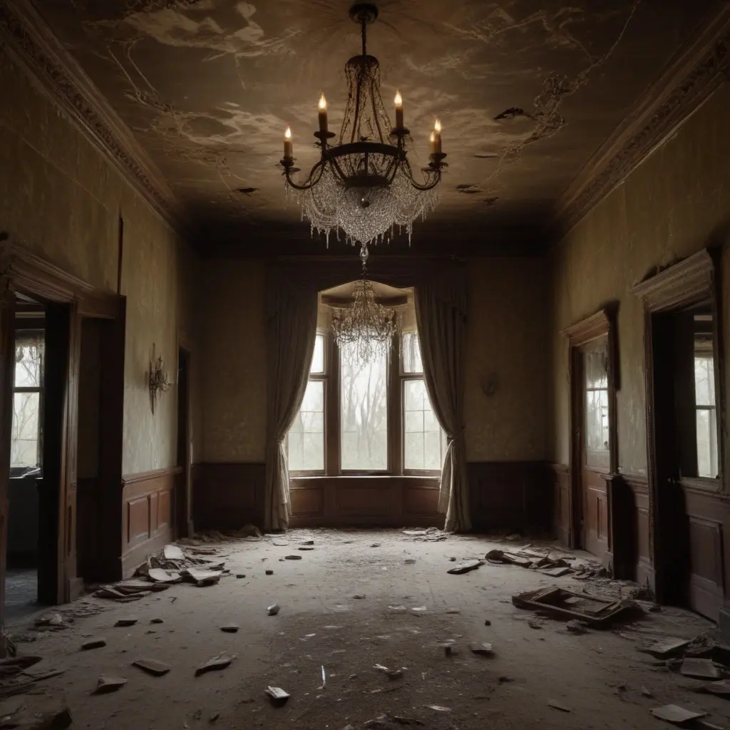 (Alt text: haunted mansion interior with decaying furniture and eerie lighting)