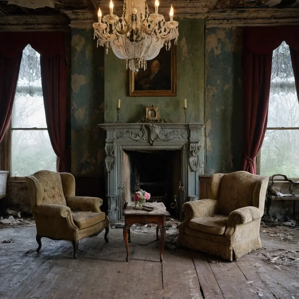The heart of Eldermere House is its grand parlor — once a place of laughter and lavish gatherings. Today, it feels more like a mausoleum of memories. Visitors describe hearing faint strains of music, though no instruments play. The faint scent of roses lingers, mingling with the must of decay.