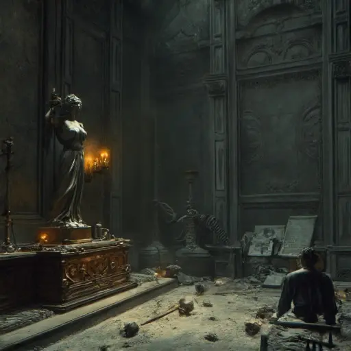 Moralist Master Virtus Vacuum was last heard working in his study, followed by a sudden, intense sound of heavy wood grinding and metal snapping (from the Justice statue and the printing press) and then immediate, profound silence. He did not leave the manor. The next morning, the study was cold, the Conscience Chamber sealed, and the man was gone. No body was found, and the only evidence was the singular, physical alteration to his final philosophical work.