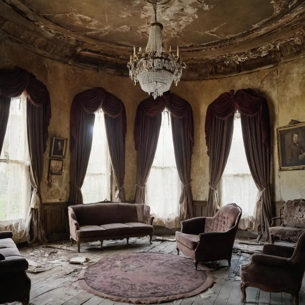 Each room in Evershade Hollow tells a story of elegance turned eerie. The drawing rooms are still cluttered with porcelain figurines, their delicate faces chipped and fading. Dust-laden curtains hang beside cracked marble fireplaces, where old embers haven’t glowed in decades. The ballroom, now draped in gloom, once echoed with laughter and string quartets — today, only the wind performs its mournful waltz.