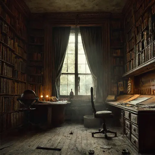 The attic hums with Elias’s lingering presence. His telescope still leans near the window, aimed not at the horizon but inward, toward the floorboards. Scattered around it are fragments of chalked equations and cryptic notations. Some say the cartographer believed the mansion itself shifted—rooms subtly realigning, corridors lengthening, as though the house breathed and reshaped itself according to memory rather than logic.