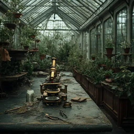 The moment the heavy, bronze-plated door to Flos-Mortis Manor was carefully pushed open, the air rushed out—cold, dense, and heavy with the pervasive, unsettling odor of dry earth, mineral salts, and the sharp scent of heavy metals. The name, combining flower/bloom with death/mortality, perfectly captured the manor’s function: a physical space dedicated to finding the ultimate truth of organic life, now embodying its own absolute termination of the natural cycle. This abandoned Victorian house was structured not for ordinary living, but for unwavering, controlled environment, its internal layout a bewildering maze of small, light-controlled cells, isolated hothouses, and meticulously designed irrigation systems intended to control every variable of sustenance and temperature.