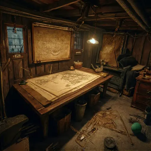 One late winter evening changed the tenor of the loft. A primary coastal chart lies half-pinned, its central meridian scored too deep, slicing the vellum fibers. Beside it, a set of triangulation notes is torn across the midpoint. A reed pen, splintered near the tip, rests in a shallow pool of ink spread like an erasure attempt.