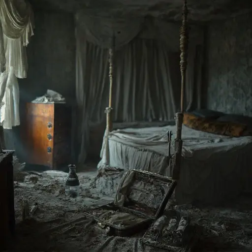 The most telling room is the small, sealed Back Laboratory. Dr. Kellen, refusing outside consultation, converted this space into his private sickroom. On the central, slate-topped Laboratory Bench, everything remains precisely where he left it. A small, brass microscope sits centered on the bench, focused on a blank slide. Surrounding it are racks of empty glass vials, a crucible containing a scattering of unidentifiable, burnt remnants, and a small, leather-bound notebook—his private medical log—open to a final, sparse entry dated late 1905. The entry contains no medical jargon, only three lines of highly disciplined, cursive script detailing his sister’s address and a single, final instruction: Do not enter the library.