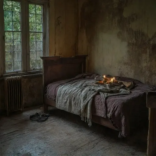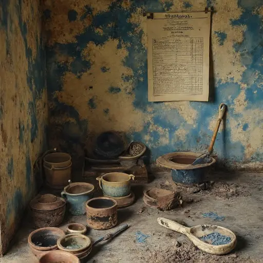 Subtle rumor murmured that a set of ceremonial bowls he crafted for a local gathering bloated in the kiln, each contour slipping off true center and raising polite, uneasy questions. In the interior corridor, Aiko’s ladle pouch lies torn along the tie. A sleeve of carving blades rests skewed beneath a wall bracket, their edges clouded. A kiln-logging sheet droops from a small stool, its temperatures overwritten in hesitant loops. A thin trail of powdered clay leads down a single stair, dispersed where a tool may have fallen in hurried reconsideration. None of these scattered signs prove miscalculation, yet each leans toward a burden Tatsuhiro carried in tightening silence.