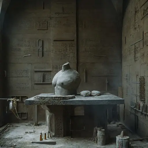 Sculptor Master Forma Vacuum was last heard working in his studio, followed by a sudden, intense sound of heavy wood splintering and stone cracking (from the easel and the workbench) and then immediate, profound silence. He did not leave the manor. The next morning, the studio was cold, the Volume Chamber sealed, and the man was gone. No body was found, and the only evidence was the singular, physical alteration to his final philosophical work.