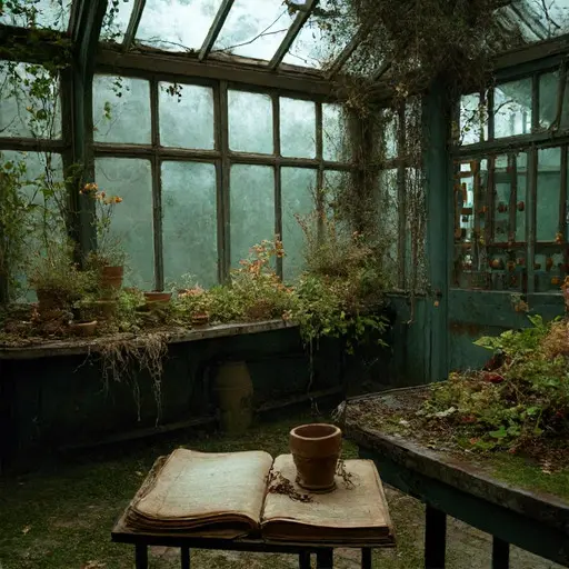 The house still whispers the name Elara Vexmoor, the botanist who nurtured life in this glass-rimmed sanctuary. Her journals lie open on a wrought-iron table, pages stiff with age yet ink vivid with wonder. Sketches of rare orchids curl in the margins, while dried petals cling stubbornly to the floor. A brass watering can rests mid-pour, tilted forever toward a pot where something strange once sprouted. It’s as though she stepped out for a moment and simply never returned. The mansion preserves her work with solemn devotion—holding her discoveries hostage in its quiet decay.