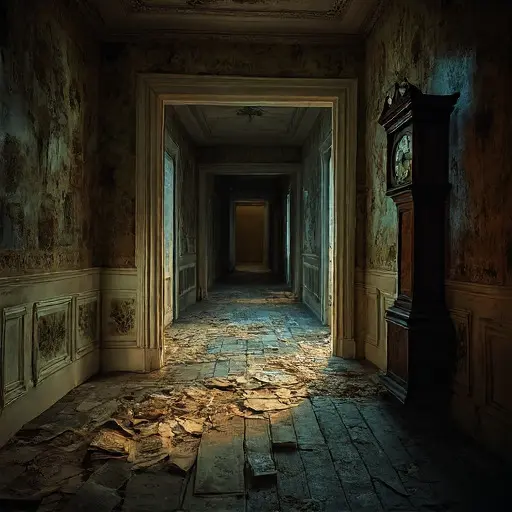 Here the air feels thicker, the silence deeper. Portraits track you with muted eyes, their varnish cracked into rivers of time. A reclusive heir once wandered this corridor, leaving behind only faint fingerprints on the rail and a stack of unsent letters tied with fraying twine. The house clings to these remnants like cherished relics. Every step stirs a sigh of dust, as if the corridor is exhaling memories it can no longer contain.