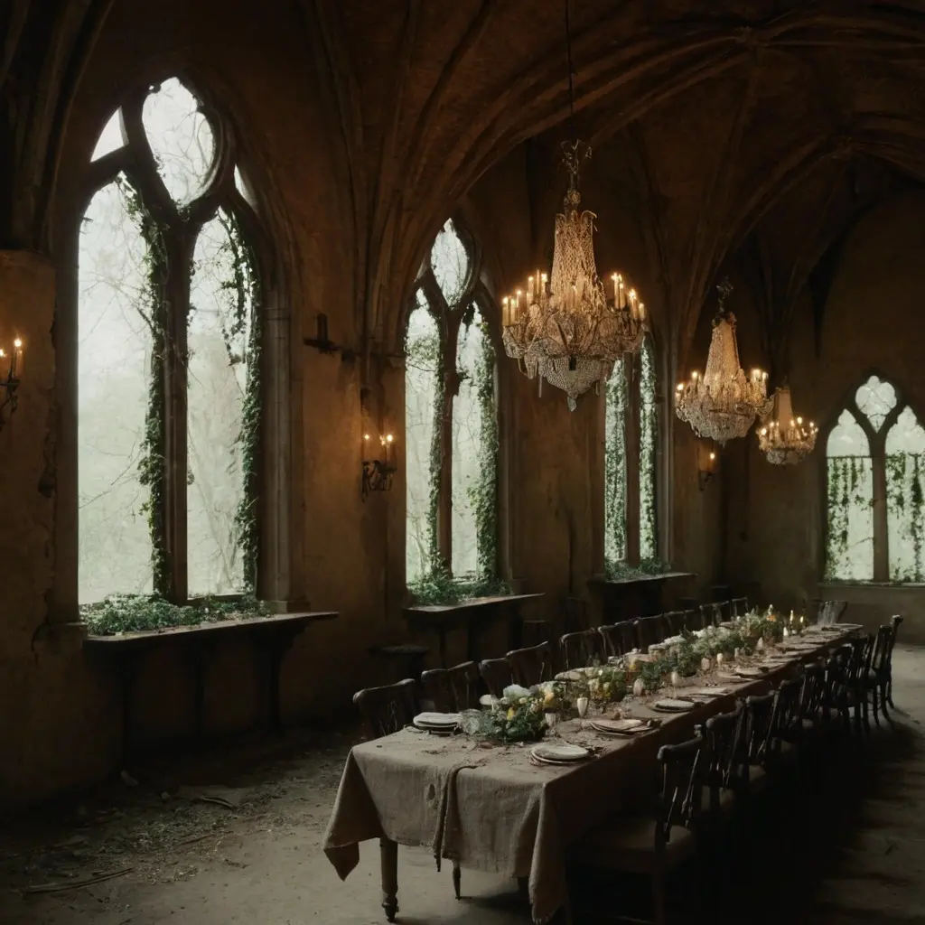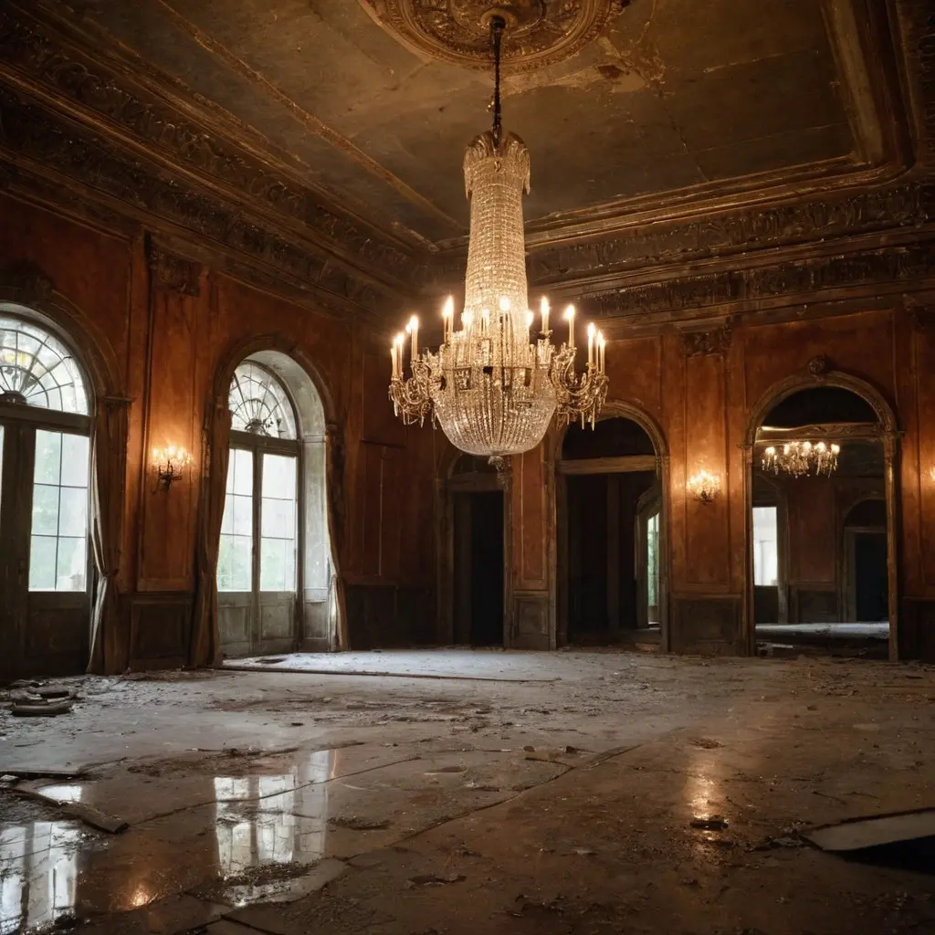 - Grand staircases leading to forgotten upper floors.