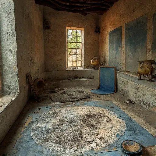 A close, contemplative quiet inhabits Al-Khatib House, heaviest in the abandoned calculus chamber where Tariq Mustafa Al-Khatib, born 1872 in Homs, once drafted natal charts and planetary predictions for merchants, caravan masters, and scholars of the madrasa. That trembling ascendant on his final chart lingers like a confession buried beneath numbers. His tools remain in tidy formation—yet no mind returns to reconcile the misalignment he left behind.