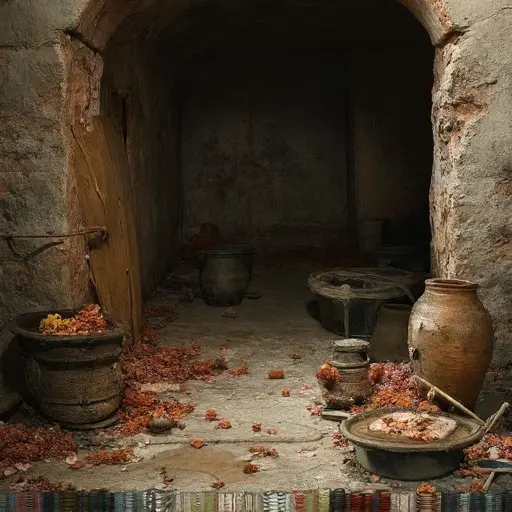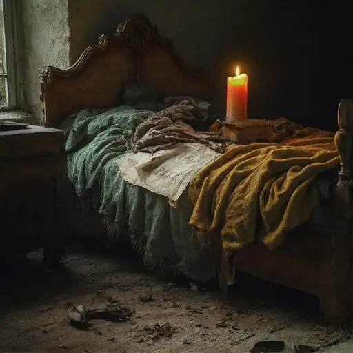 Soft rumor claimed Mateo’s latest offering candles—meant for a baptism—melted too quickly, staining linens and stirring awkward disappointment. In the inner hallway, Soledad’s ladle pouch lies torn at the seam. A wick bundle rests crooked near the wainscoting, strands uneven. A folded correction sheet leans beneath a shelf, final cooling adjustments overwritten into near silence. A thin trail of wax beads tracks down a stair, hardened mid-drip. None of these fragments confirm a mistake, yet each leans toward a concern Mateo kept close to the chest.