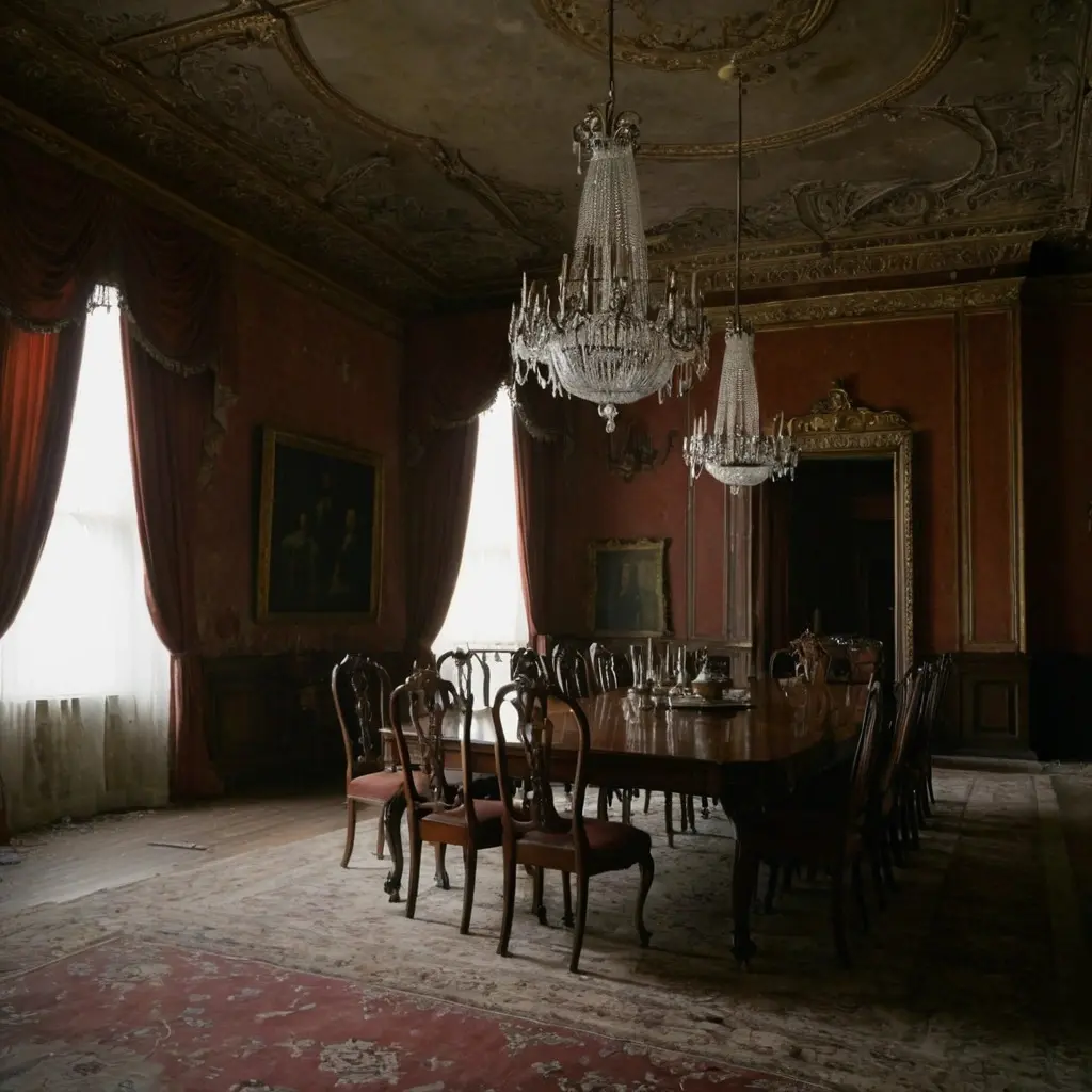 Once a symbol of Victorian opulence, Hollowmere Hall stood as a beacon of architectural brilliance. Today, it stands as a beautiful ruin, its faded elegance telling a story of forgotten times. The woodwork, though scarred by age, still shows traces of intricate craftsmanship. The marble staircase — cracked but sturdy — leads up to darkened hallways where every door creaks like it remembers.