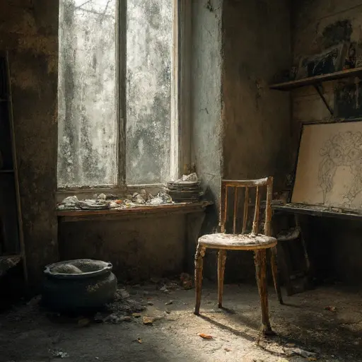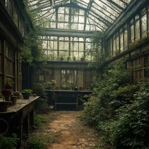 Lornwick Hollow once sheltered Maribel Asterleigh, a reclusive botanist whose genius was matched only by her quiet sorrow. Her journals, scattered like fallen leaves across a warped desk, speak of hybrid roses that glowed faintly at dusk and fragile orchids that shivered when touched. A cracked teacup rests beside her last sketch—a translucent flower labeled Glasswing, never brought to bloom. The room holds its breath around her absence. Wilted roots cling to empty planters as if refusing to admit she is gone. I imagine her moving through this space in soft slippers, humming to her plants, nurturing them like fragile secrets. Every corner feels suspended in the moment she left it, as though the house itself cannot bear to disturb her unfinished dreams.