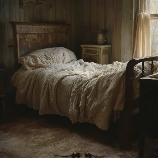 Soft murmurs rolled through the souk when a merchant returned a prized attar, claiming its scent faltered after a single day—an improbable lapse from Rafiq, known for long-lingering compositions. In the interior corridor, Yamina’s alembic cloth lies torn at the edge. A blending card droops near the wainscot, its ratios overwritten in unsteady pencil. Beneath a narrow fig-wood stool sits a fractured stopper, though no shard explains the break. A faint trail of oil-darkened dust marks a single stair tread—evidence of mixtures carried with an increasingly uncertain grip. These fragments confirm nothing outright, yet each hints at a quiet strain Rafiq never voiced.