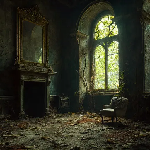 The stillness inside Aegisthorne Hall was the sound of a century holding its breath. Crossing the wrecked parquet floor of the Main Entry, the air was heavy with the mineral scent of powdered stone and the dry, decaying spice of old cedar. This mansion had been left to the quiet mercies of time and the slow, relentless invasion of the outside world.