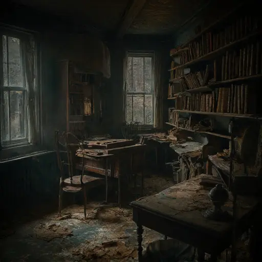 Of all who once lived here, the house clings most fiercely to Iris Thalen, the botanist who treated every room as a living companion. Her conservatory remains a fragile cathedral of past devotion. A journal lies open on a warped bench, its ink blurred yet emotional, describing her search for a rare night-blooming specimen said to cure her failing lungs. Half-finished sketches curl inside a drawer, their edges browned with age. A delicate seedling—long dead—sits beside a rusted watering can, positioned as though she’d set it down only moments before. Some believe she disappeared after one final experiment, the mansion left to cradle her unfinished farewell. The air in the glasshouse still tastes faintly of earth, as if her presence refuses to loosen its hold.