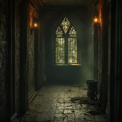 Beyond the workshop, a winding corridor gathers the mansion’s remaining murmurs like forgotten threads. Each creaking step feels deliberate, as though the house is weighing my presence against the memories it still guards. Portraits line the hallway, their varnish cracked, their faces softened into ghostly warmth. One shows Elias beside a towering regulator clock, pride shadowed by quiet fear. Tucked behind the frame, a slip of parchment flutters in a chilly draft. Its ink blurs, yet a single line remains clear enough to pierce the silence: “I could not finish what time demanded of me.” The words tremble in my hands. Ahead, a locked door waits, humming with a faint ticking that does not belong to wind or shifting beams. I press my ear to the wood and hear the delicate pulse of something long paused but never extinguished. In the dim glow, Marrowell Grange seems to lean close, urging me deeper, inviting a final listener to understand the sorrow it still protects. Its lingering heartbeat guides me toward secrets waiting in stillness.