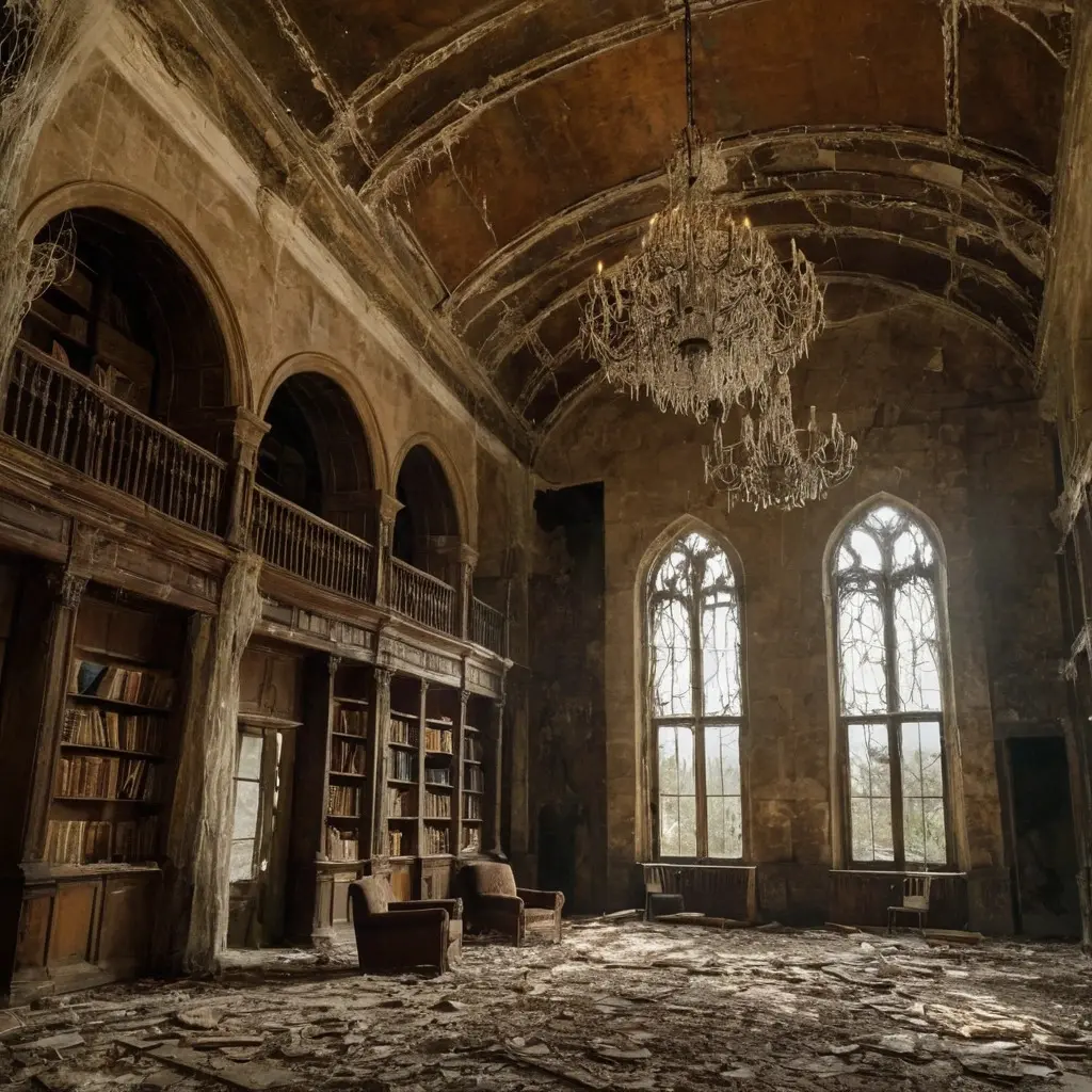 Beyond the grand hall lies the study — perhaps the most haunting room in the mansion. The scent of old paper lingers in the air, mingling with the faint trace of mildew. Shelves sag beneath the weight of centuries-old tomes, and the desk still holds an unfinished letter sealed with a wax insignia no one recognizes.