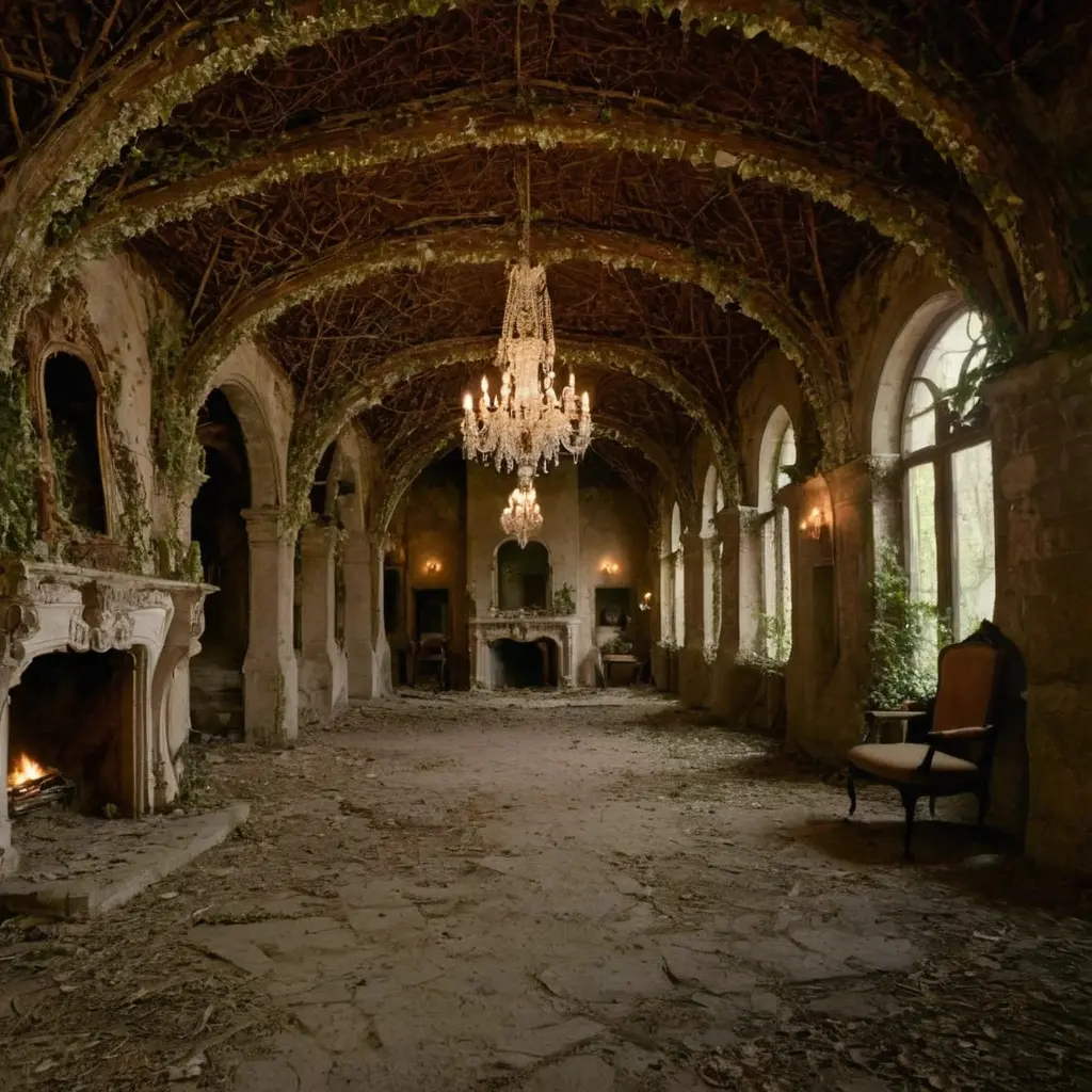 The grand hall of Marrowind Hollow was the heart of aristocratic gatherings — balls, dinners, and whispered deals under candlelight. Now, the same hall stands cloaked in silence, the air thick with dust and nostalgia. Faded murals on the vaulted ceiling depict celestial scenes, their colors dulled by time.