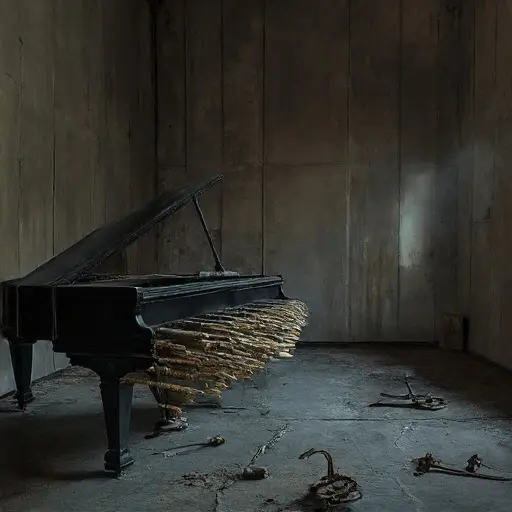 Maestro Julian Cadenza was last heard working in his music room, followed by a sudden, intense sound of taut wires snapping from within the piano and then immediate, profound silence. He did not leave the manor. The next morning, the music room was cold, the piano sealed, and the man was gone. No body was found, and the only evidence was the singular, physical alteration to his final philosophical score.