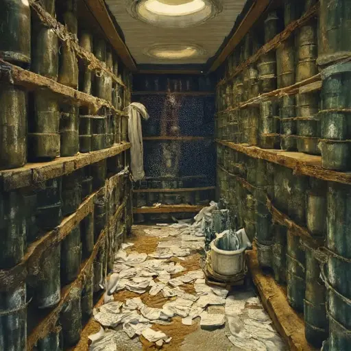 The house preserves his systematic anxiety structurally. Many internal passages are fitted with small, precisely calibrated air filtration units and sterilized UV lights built into the ceilings, now all rusted and shattered, remnants of his attempts to create a universal, absolutely fixed and contamination-free environment within the manor.