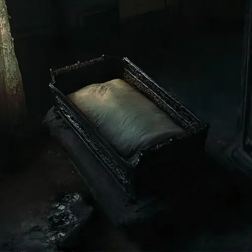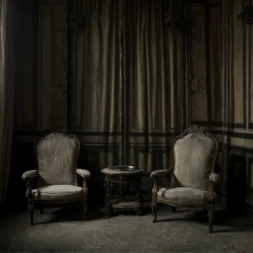 The ultimate mystery lies in the small, windowless parlor. There, the casket remains on the pedestal, precisely centered. Though no body was ever found, the presence in this abandoned Victorian house is absolute. The scent of chemicals lingers, and the quiet is unnerving—the profound, manufactured stillness of a man who pursued a final, beautiful perfection, and in doing so, achieved his own quiet, eternal preservation.