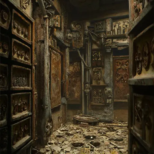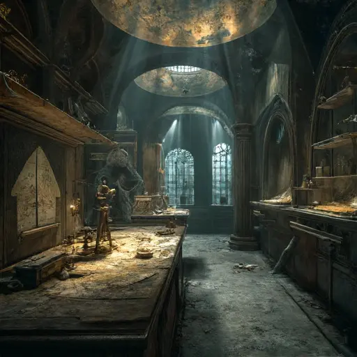 The house preserves his systematic rigor structurally. Many internal passages are fitted with small, precisely calibrated leveling platforms and inertial stabilization systems built into the floors, now all rusted and frozen, remnants of his attempts to create a universal, absolutely fixed and non-moving environment within the manor.
