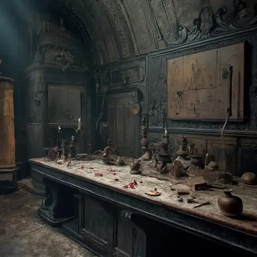 Perfumer Master Odor Vacuum was last heard working in his laboratory, followed by a sudden, intense sound of heavy copper crushing and glass breaking (from the still and the centrifuge) and then immediate, profound silence. He did not leave the manor. The next morning, the laboratory was cold, the Volatility Chamber sealed, and the man was gone. No body was found, and the only evidence was the singular, physical alteration to his final philosophical work.