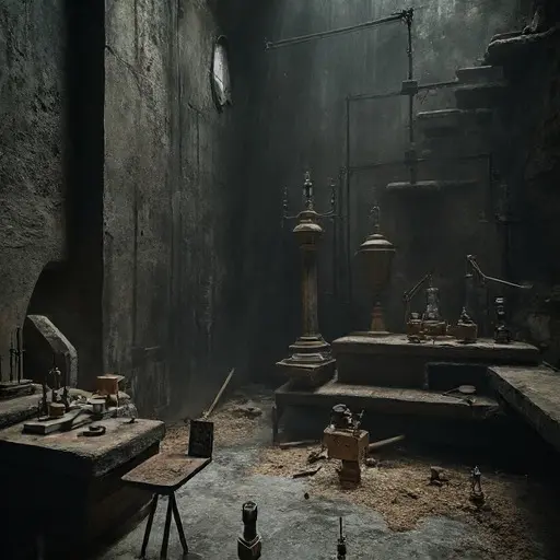 Alchemist Master Pondus Vacuum was last heard working in his laboratory, followed by a sudden, intense sound of heavy metal snapping and stone cracking (from the balance and the distillation column) and then immediate, profound silence. He did not leave the manor. The next morning, the laboratory was cold, the Density Chamber sealed, and the man was gone. No body was found, and the only evidence was the singular, physical alteration to his final philosophical work.