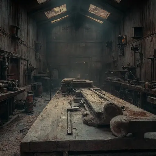 The moment the heavy, bronze-plated door to Praxis-Eremia House was carefully pushed open, the air rushed out—cold, dense, and heavy with the pervasive, unsettling odor of dry metal, mineral dust, and the sharp scent of heavy metals. The name, combining action/practice with isolation/desert, perfectly captured the manor’s function: a physical space dedicated to achieving the ultimate truth of utility, now embodying its own absolute termination of creation. This abandoned Victorian house was structured not for ordinary living, but for unwavering, controlled execution, its internal layout a bewildering maze of small, isolated assembly cells, soundproofed forging rooms, and meticulously designed vibration dampeners intended to eliminate all external variables that might compromise a pure execution of craft.
