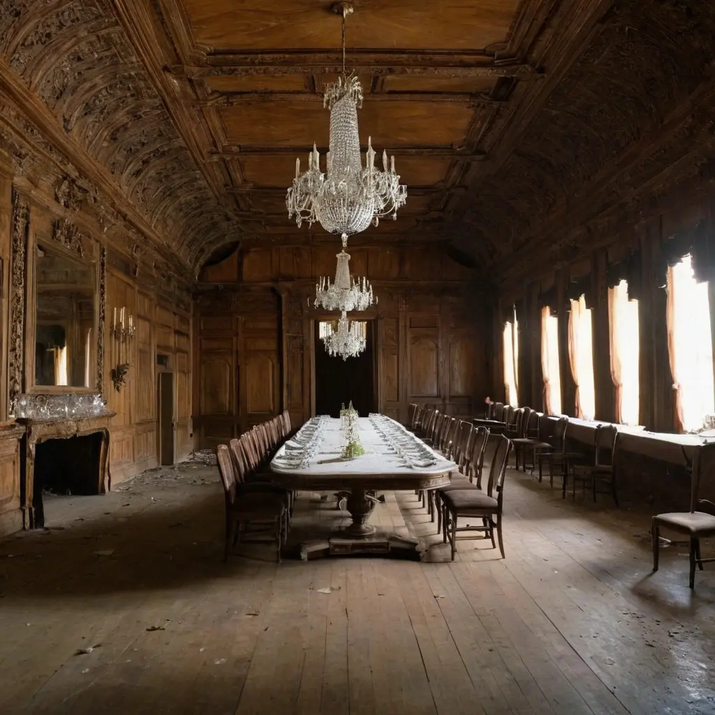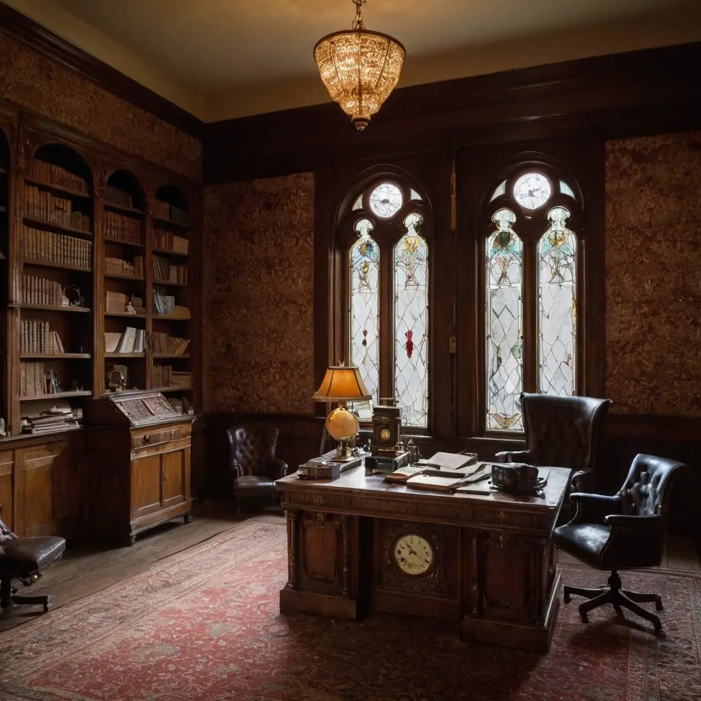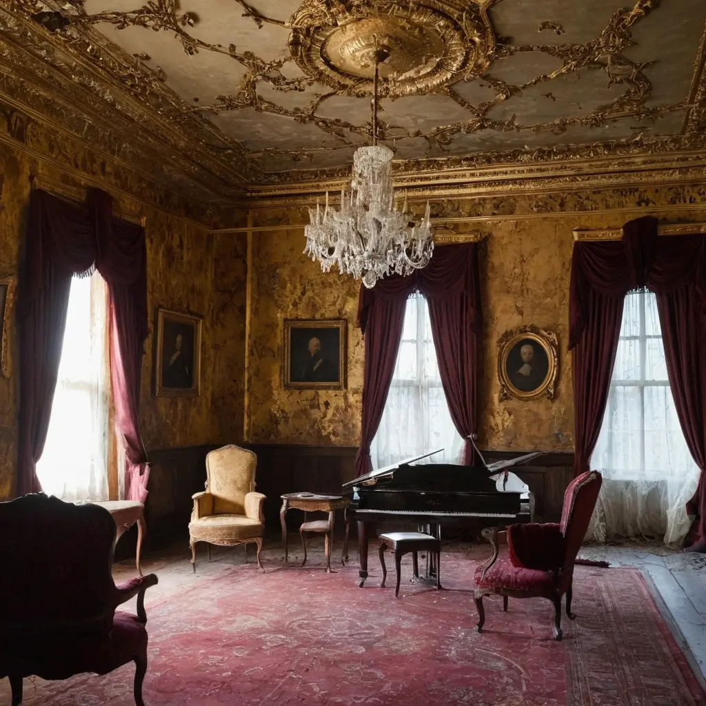 Stepping through its arched doorway, the air turns colder, carrying a scent of damp cedar and forgotten perfume. Dust swirls like ghosts in the pale light that filters through the cracked stained-glass windows. Each sound—the creak of a stair, the distant rattle of wind—feels alive, as if the mansion itself is breathing.