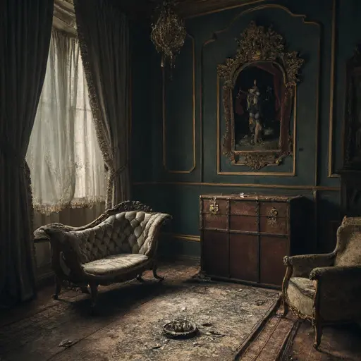 Before the house decayed, Aldric Vale, the Illusionist, crafted wonders within these rooms. Locals once traveled miles to witness his impossible feats, claiming his performances felt more like glimpses into another realm than mere entertainment. Here, in this parlour of fractured reflections and frayed fabrics, his presence remains startlingly vivid.