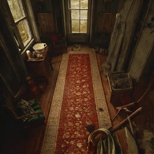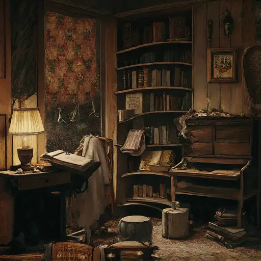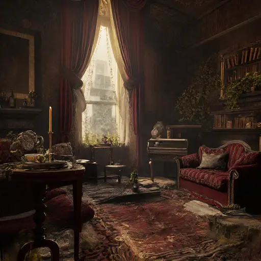 Rynthamore Eldravel House holds the imprint of a life that once moved gently through its rooms—routines quiet enough to be overlooked yet steady enough to shape every surface. The parlour reflects the softened contours of habits that faltered without fanfare: tea cooling, fabric half-folded, work paused in the middle of its own rhythm.
