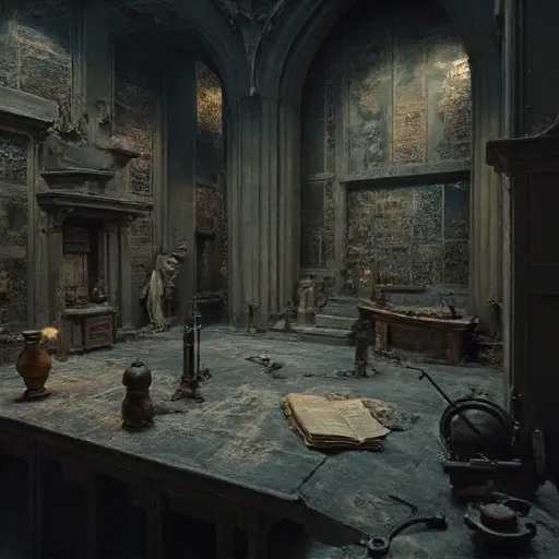 The moment the heavy, bronze-plated door to Sapientia-Mut House was carefully pushed open, the air rushed out—cold, dense, and heavy with the pervasive, unsettling odor of dry materials, mineral dust, and the sharp scent of heavy metals. The name, combining wisdom/knowledge with silent/mute, perfectly captured the manor’s function: a physical space dedicated to achieving the ultimate truth of intellect, now embodying its own absolute termination of reason. This abandoned Victorian house was structured not for ordinary living, but for unwavering, controlled study, its internal layout a bewildering maze of small, isolated theorem-testing cells, soundproofed argumentation bunkers, and meticulously designed anti-dilemma stabilizers intended to eliminate all external variables that might corrupt a pure logical constant.