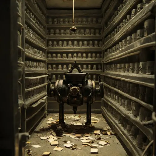 Chef Master Gustus Vacuum was last heard working in his kitchen, followed by a sudden, intense sound of heavy stone grinding and metal snapping (from the mortar and pestle and the food mill) and then immediate, profound silence. He did not leave the manor. The next morning, the kitchen was cold, the Palate Chamber sealed, and the man was gone. No body was found, and the only evidence was the singular, physical alteration to his final philosophical work.