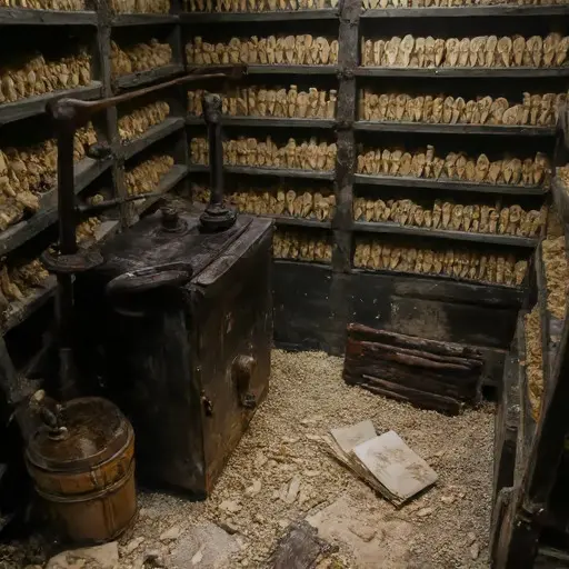 The house preserves his systematic anxiety structurally. Many internal passages are fitted with small, precisely calibrated moisture gauges built into the walls, now all rusted and broken, remnants of his attempts to create a universal, optimal environment for ink and parchment preservation.