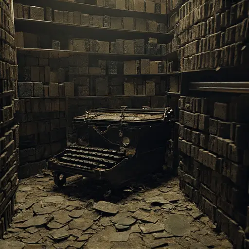 Author Master Verbum Vacuum was last heard working in his study, followed by a sudden, intense sound of heavy metal grinding and snapping springs (from the printing press hand wheel and the typewriter) and then immediate, profound silence. He did not leave the manor. The next morning, the study was cold, the Canon Chamber sealed, and the man was gone. No body was found, and the only evidence was the singular, physical alteration to his final philosophical work.