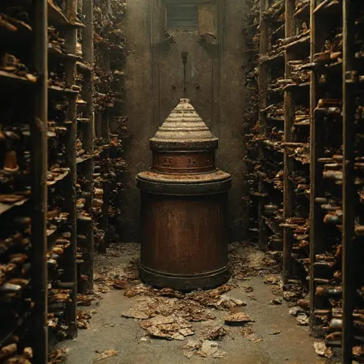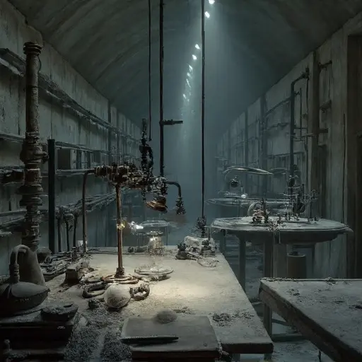 The house preserves his systematic anxiety structurally. Many internal passages are fitted with small, precisely calibrated anti-static mats and atmospheric pressure regulators built into the floors and walls, now all rusted and frozen, remnants of his attempts to create a universal, absolutely fixed and non-reactive environment within the manor.