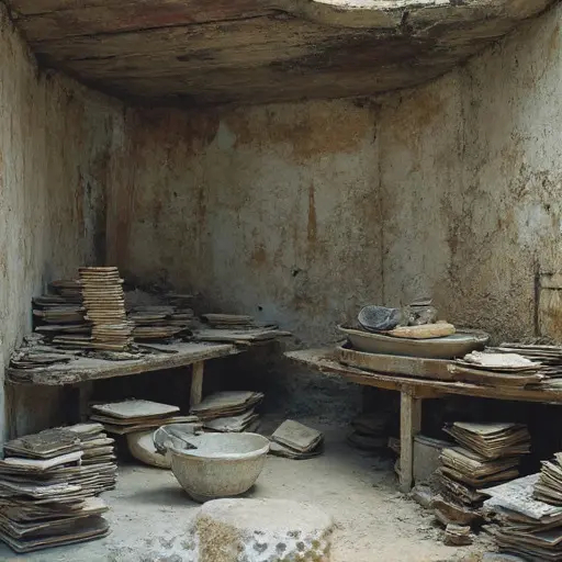 His evenings unfolded in meticulous order: clay wedged until smooth, stencils aligned by lamplight, powdered oxides sifted into shallow troughs. His presence remains—brushes laid by thickness, tiles sorted by firing stage, glazes recorded in looping script across curling pages. Even the indent on the stool’s leg marks where he braced himself while adjusting a motif too delicate to trust at first glance.