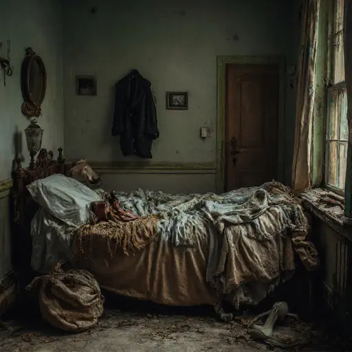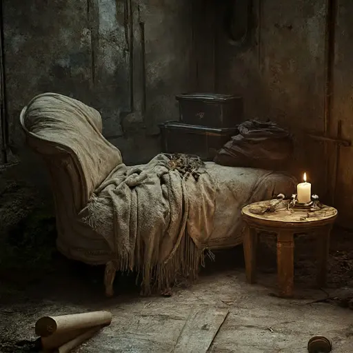 Whispers claimed Gianni misapplied a boundary condition in a treatise he intended to publish for a modest academic circle, prompting doubts about his larger work. In the narrow corridor, Luciana’s compass case lies split at the hinge. A cluster of proofs slumps near the wainscoting, final steps crossed out. A chalk fragment has rolled beneath a cabinet, trailing faint dust. A sheet of inequalities droops from the stair rail, last columns overwritten in haste. These scattered signs intimate uncertainty rather than guilt, though none reveal the moment his faith in the argument faltered.
