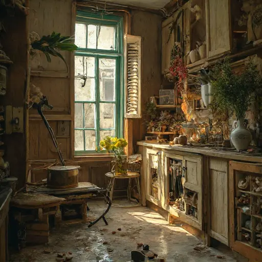 Rumors stirred that Oleg misaligned an estate’s grand frieze, causing tension with a patron known for his exacting standards. In the supply loft, tins of primer stand unevenly, one lid popped askew. A stencil roll lies crushed, its pattern distorted. Sofiya’s cloth shows a fresh crease where it was clutched too tightly. A brush used for fine edgings is bent at the ferrule, its bristles splayed. None of these explain why his once-unbroken confidence wavered, though each sign edges close to a strain he would not voice.
